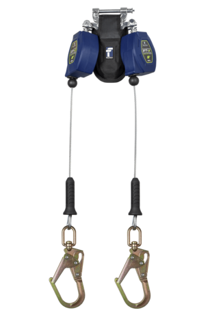Falltech 8' FT-X Cable Class 2 Leading Edge Personal SRL-P, Twin-leg with Steel Swivel Mini Rebar Hooks with SpeedLink (ANSI/CSA
